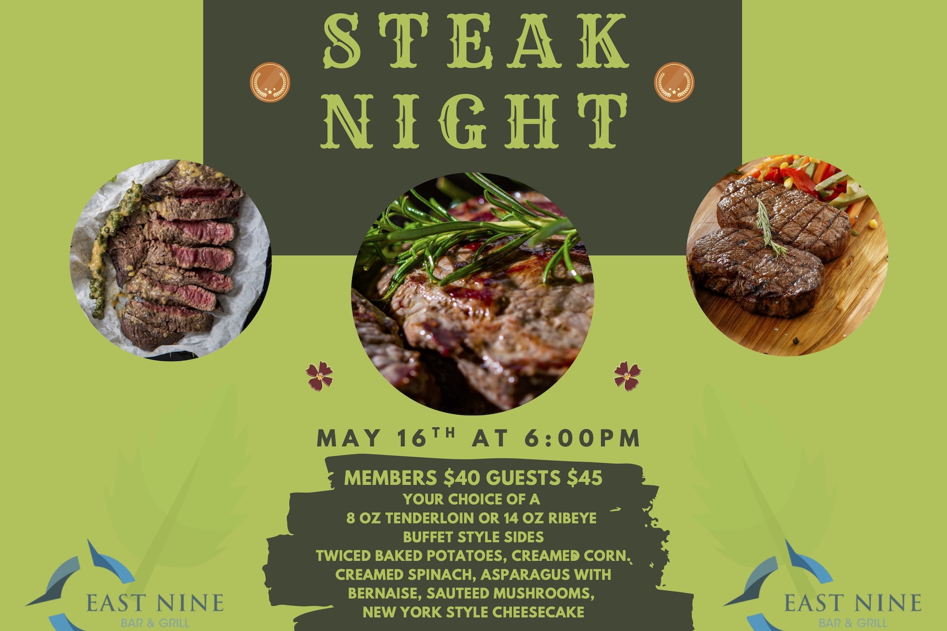 6:00 pm - 9:00 pm Steak Night May 16 @ 6:00 pm - 9:00 pm Steak Night Come enjoy Steak Night at Fernandina Beach Golf Club! $45