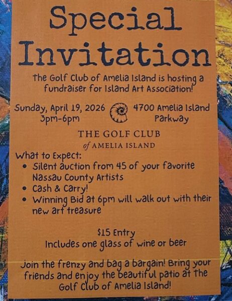 Bring your friends and family and enjoy the incredible art … and the beautiful patio at the Golf Club of Amelia Island! Cash/Check/Credit, and Carry.