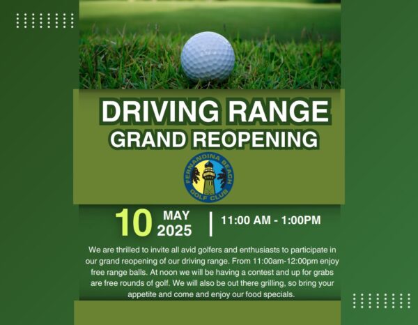 The Fernandina Beach Golf Club is thrilled to invite all avid golfers and enthusiasts to participate in our grand reopening of our Lighthouse Driving Range.
