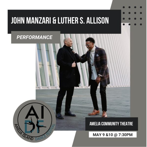 The Amelia Island Dance Festival is proud to present an exceptional performance by acclaimed tap dancer John Manzari and world-renowned pianist Luther S. Allison on May 9 and 10, 2025 on Amelia Island.