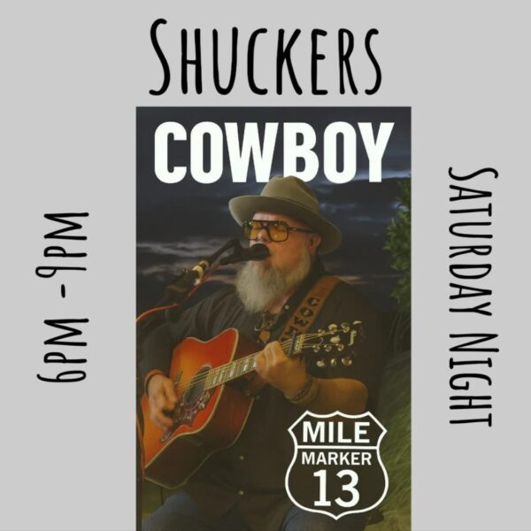 Come out to Shucker’s Oyster Bar & Grill on Saturday, January 17, for great vibes of LIVE local music with “Cowboy” & Mile Marker 13!