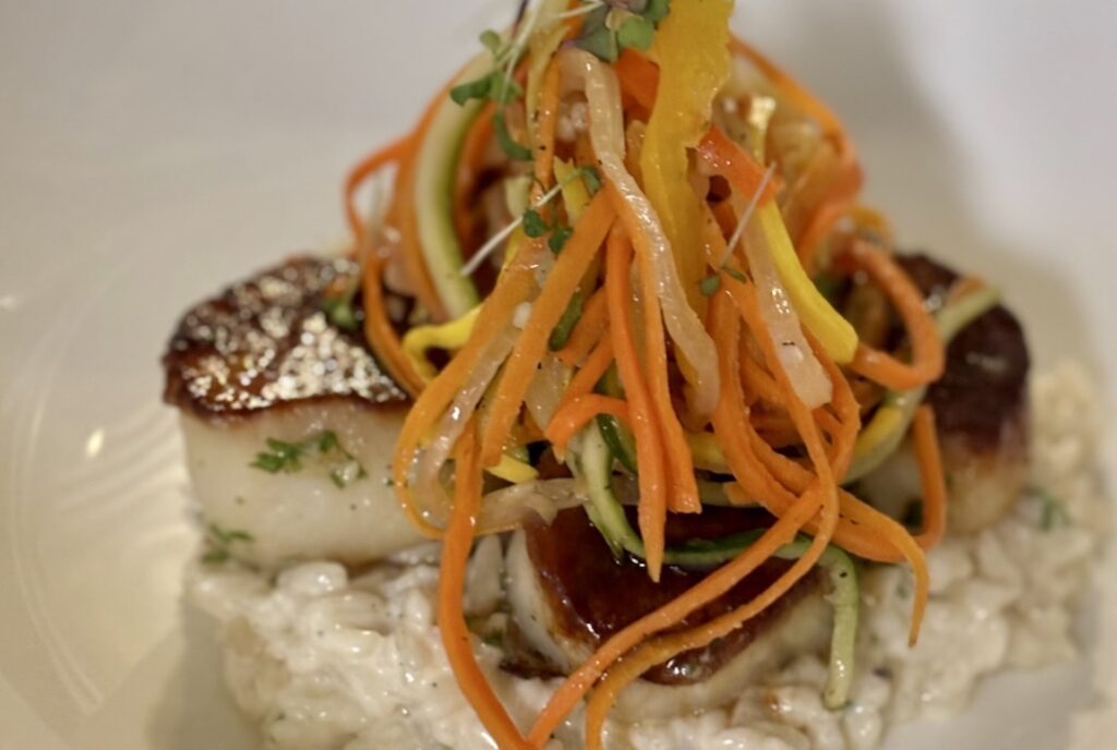 Indulge in seared Georges Bank sea scallops – naturally sweet with a firm texture that caramelize perfectly in the pan. This dish is served with rich mushroom risotto, autumn vegetables, and a drizzle of truffle oil.
