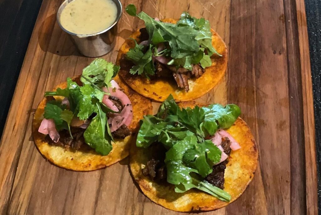 For a flavorful and tender dish, try the slow-cooked Lamb Barbacoa at Mezcal. It’s served with a cactus salad, mild salsa, tortillas, and white rice. A perfect combination of rich, hearty, and yummy all melded together.