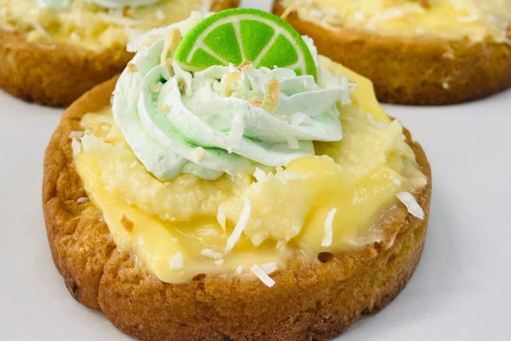 Get your tastebuds dancing with Nana Teresa’s Key Lime Dessert Cups. This treat starts with a Coconut Key Lime Cookie Base and is layered with luscious Coconut Cream followed by a smooth Key Lime Pastry Cream and crowned with a light, tangy Key Lime Mousse. Omg.