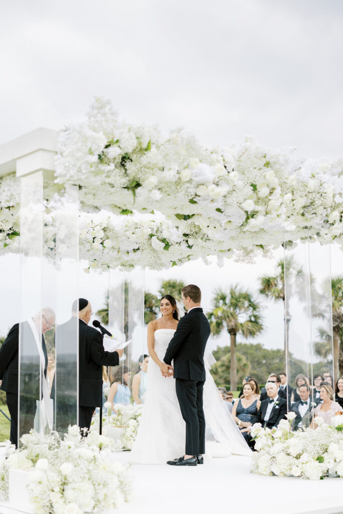 Adina and Justin’s journey to marital bliss began with a rehearsal dinner at the Golf Club of Amelia Island, setting the tone for an unforgettable weekend of sophistication and luxury. Their love story took center stage on the oceanfront lawn of The Ritz-Carlton, Amelia Island where they exchanged vows against the stunning backdrop of the sea. Festivities continued indoors until the wee hours where they wined, dined, and danced the night away.
