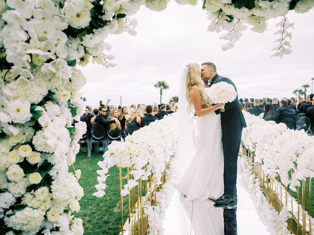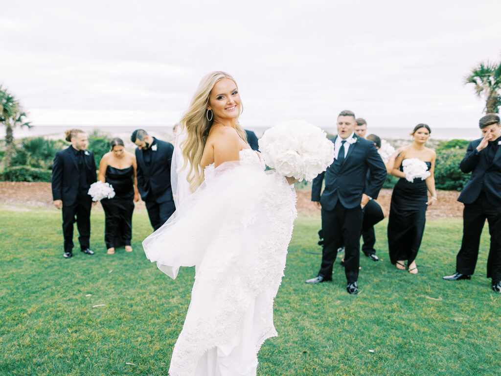 Bayley and Brian’s wedding was an unforgettable black-tie affair that exuded timeless elegance. Set against the luxurious backdrop of The Ritz-Carlton, Amelia Island, guests were treated to an experience of pure opulence. The ceremony took place on the ocean front lawn outdoors, with the couple exchanging vows to the sights and sounds of the sea.