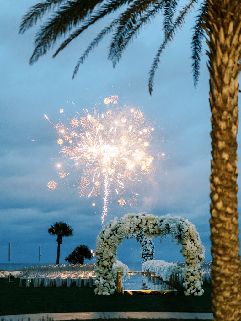 As evening fell, the festivities continued with delicious cuisine, champagne toasts, laughter, dancing, and the joyous sounds of celebration – ending the night with fireworks!