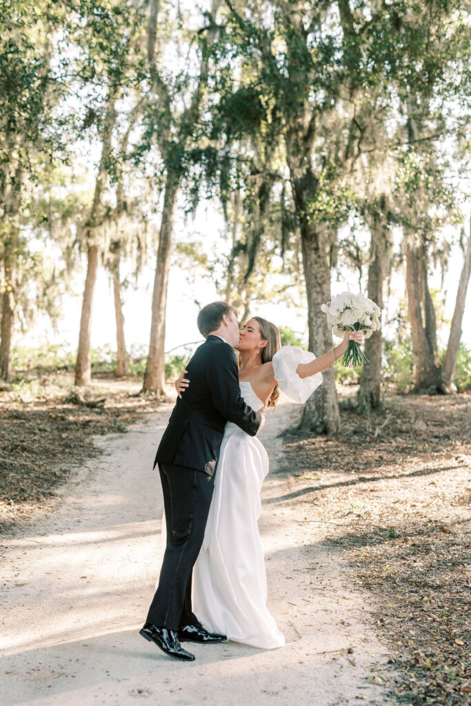 Gracen and Will’s love story found its perfect beginning surrounded by nature at The Amelia River Club, a hidden gem nestled amongst moss-draped oaks and age-old pines. With the sun setting over the gorgeous golden marsh grasses and the intracoastal waterway as a backdrop, it was the perfect place to exchange vows and begin their life together.