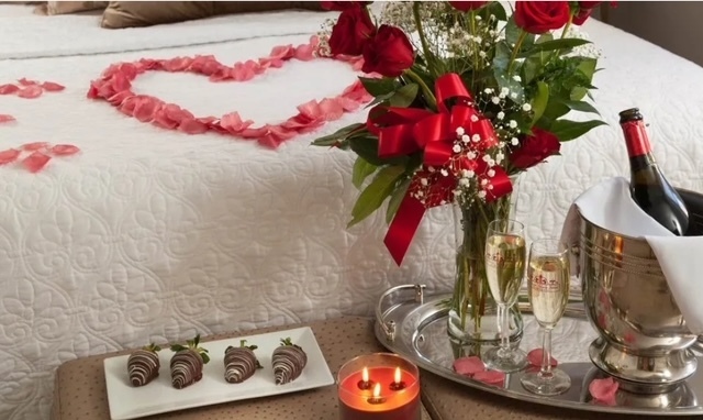 * Dozen roses* Chocolate strawberries* Bottle of champagne
