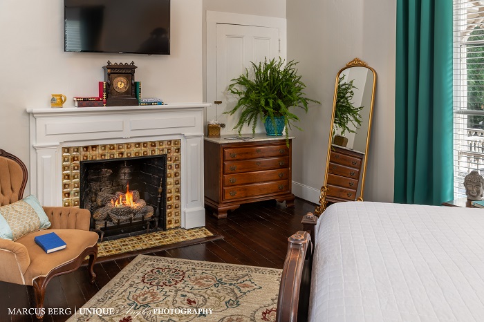 Our luxurious B&B is comprised of three buildings with 11 guest rooms. The Williams House, circa 1856, an Antebellum Victorian mansion owned and occupied for almost 100 years by the family of Marcellus and Emma Williams, offers five elegant guest rooms. The second building, Hearthstone House, circa 1880’s, is a frame vernacular building with Greek Revival influence and contains four classic guest suites. And lastly, the Carriage House, rebuilt in 2004 on the site of the original carriage house, offers two guest rooms. An ornately wrought iron fence topped with gold fleur-de-lis ushers guests into a mansion with a unique gingerbread design by famed New York architect Robert Sands Schuyler. Guests are greeted by sweeping verandas, lush gardens, beautiful moldings, massive pocket doors of heart pine and mahogany. Heart pine and mahogany floors and gorgeous hand-carved mantles surround original tiled fireplaces. Crystal chandeliers, stained glass windows, and beautiful furniture remind one of the 1800’s and life as it might have been for the Williams family.