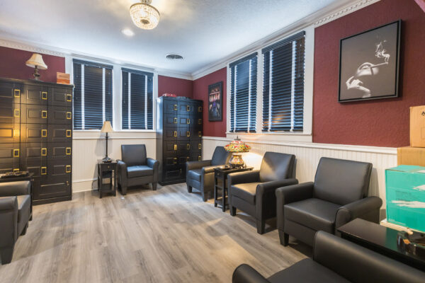 There is space for everyone, our parlor offers two indoor smoking lounges, two non-smoking gathering rooms, an outdoor front porch and patio, as well as a spacious courtyard out back. We pride ourselves in serving our guests so they can sit and enjoy the company of their friends and family in a relaxed conversational setting.