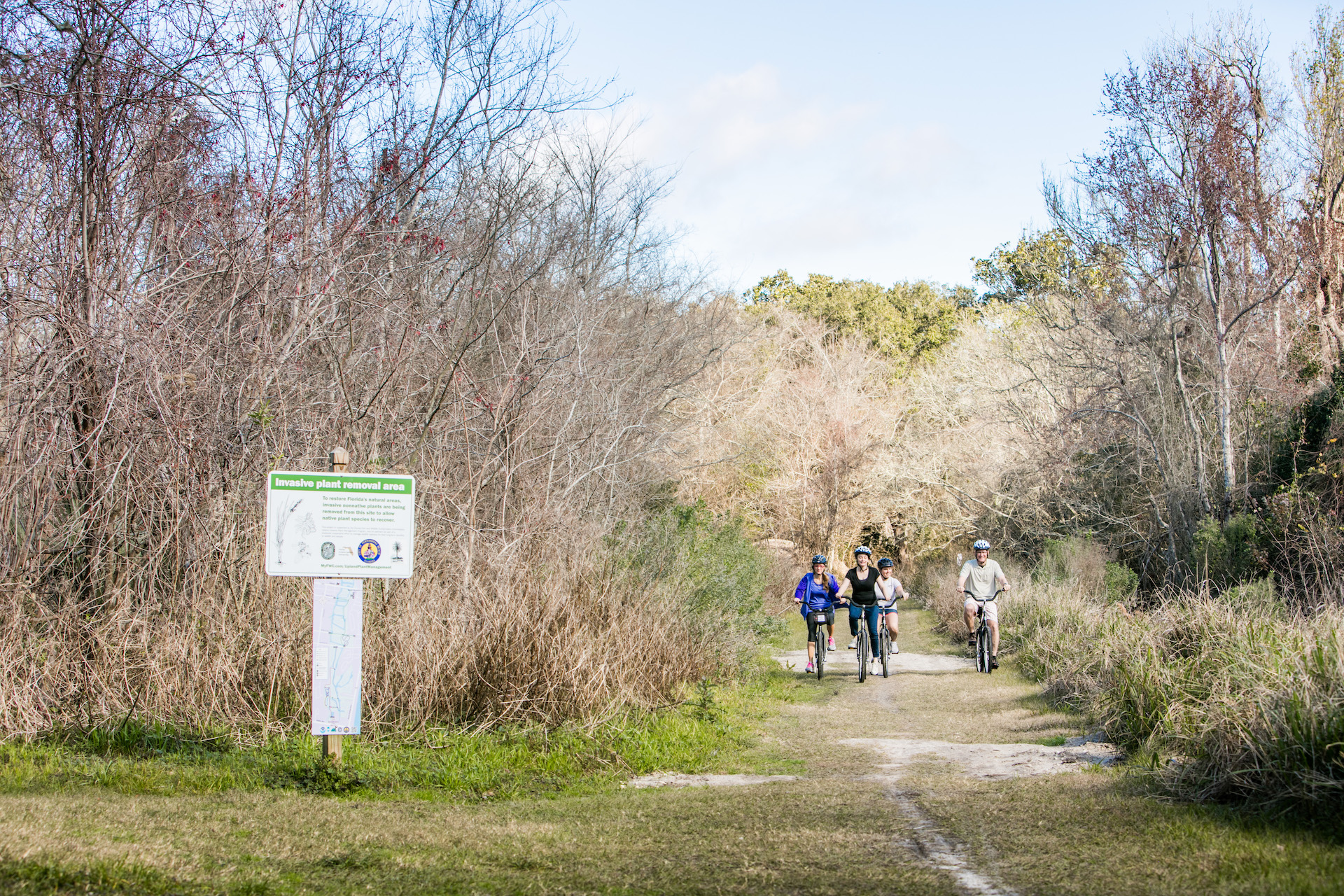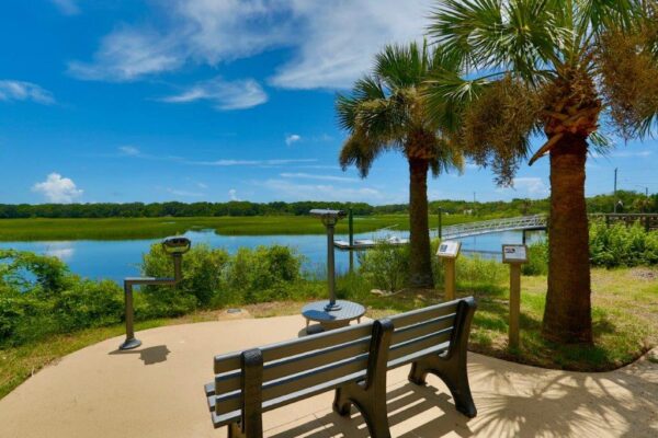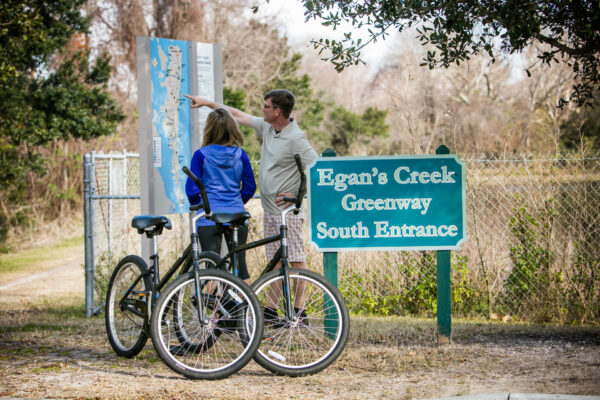 Egans Creek Park is 300 acres of unspoiled nature located right on the Egans Creek river and offering a network of trails suitable for walking and bicycling. There is a Nature Pavilion at the entrance to the greenway on Atlantic Avenue featuring exercise equipment, a playground and fishing from the pier – plus a great place for a picnic lunch! Pathways and fishing dock within the Nature Pavilion are designed for travel accessabilty.