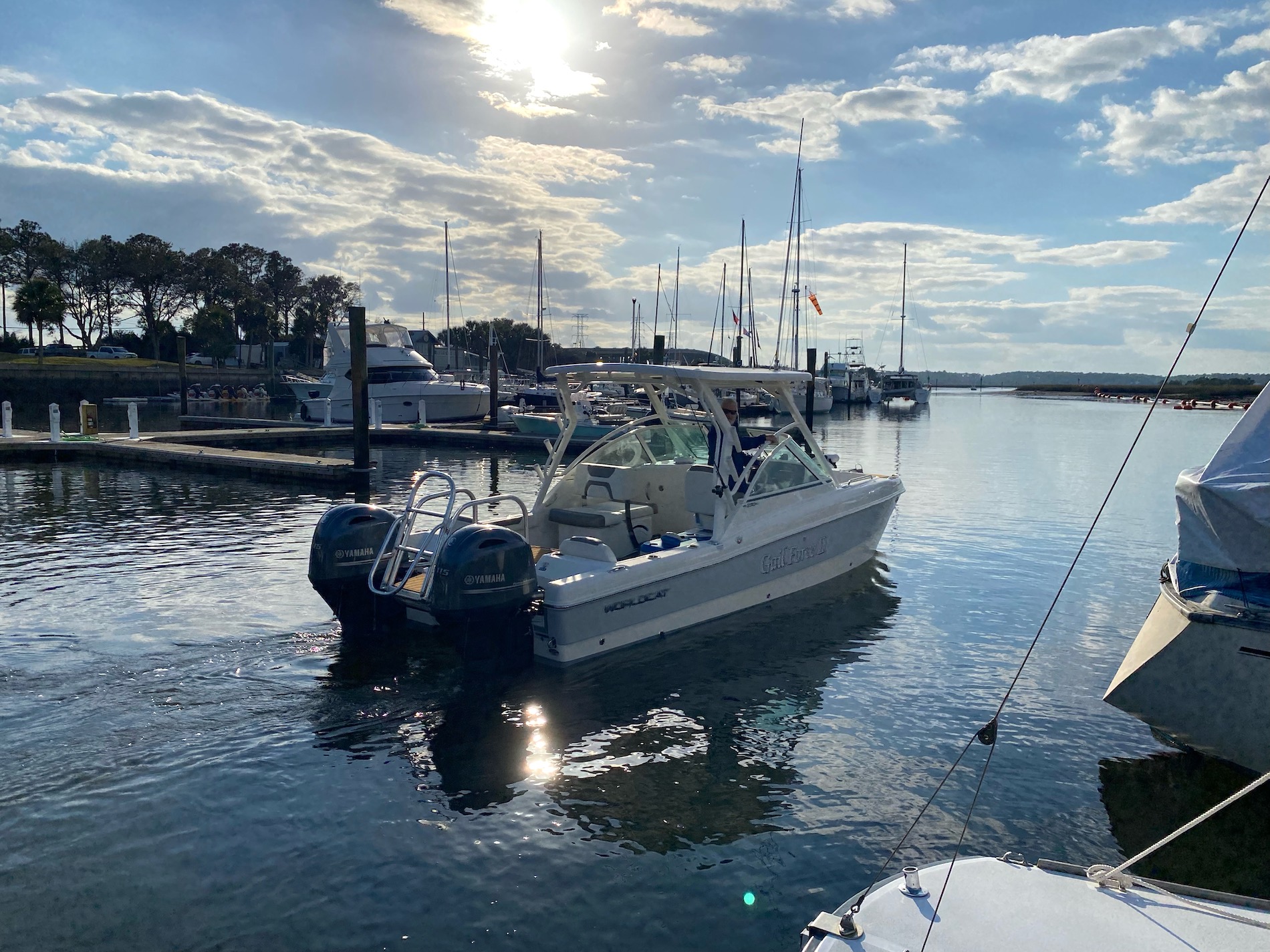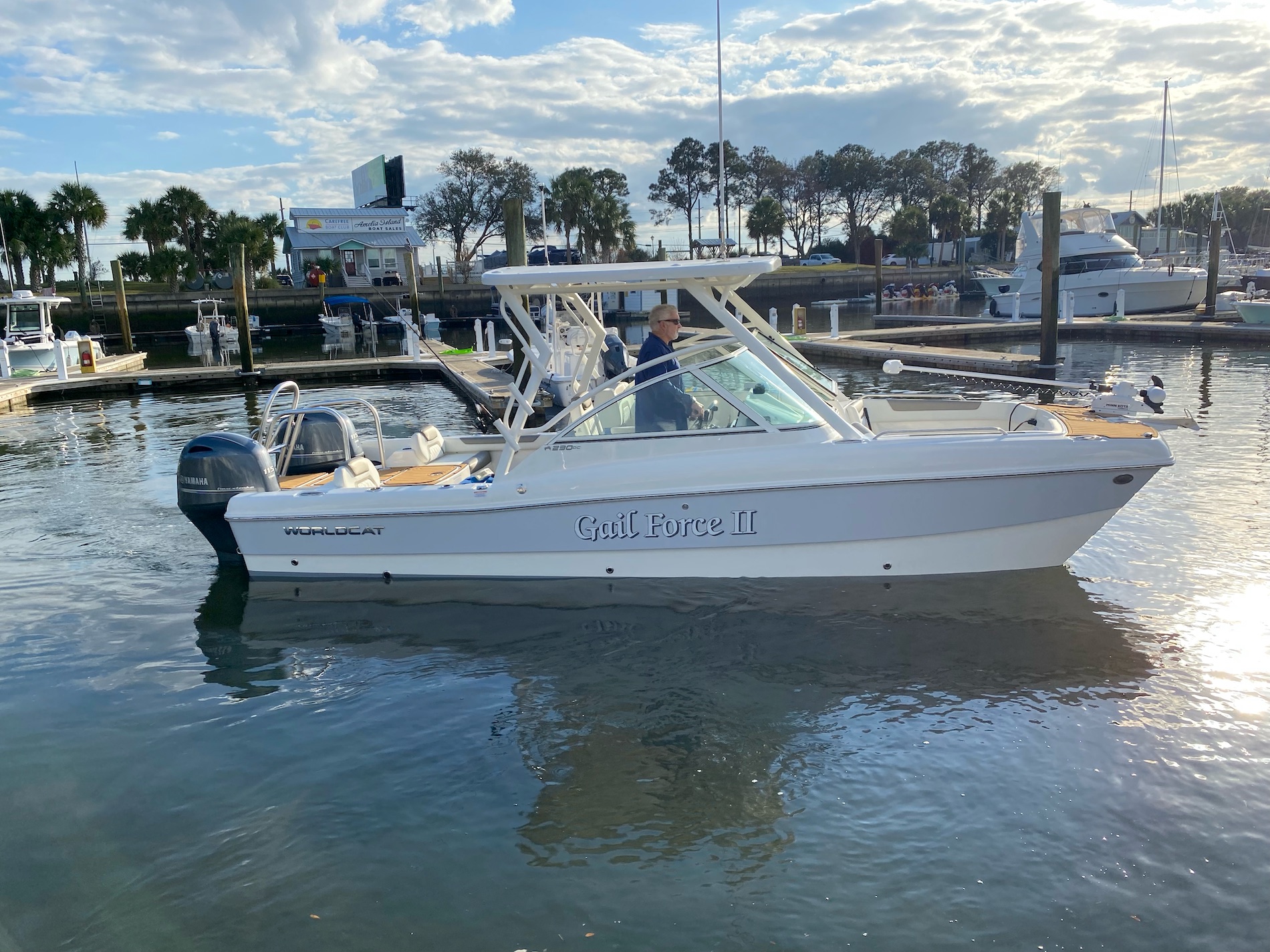 Gail Force II of Amelia offers private charter cruises on our 2023 Worldcat (with a flushing toilet!). USCG approved up to 6 passengers plus crew. Morning and afternoon cruises, sunset cruises and custom tours available.