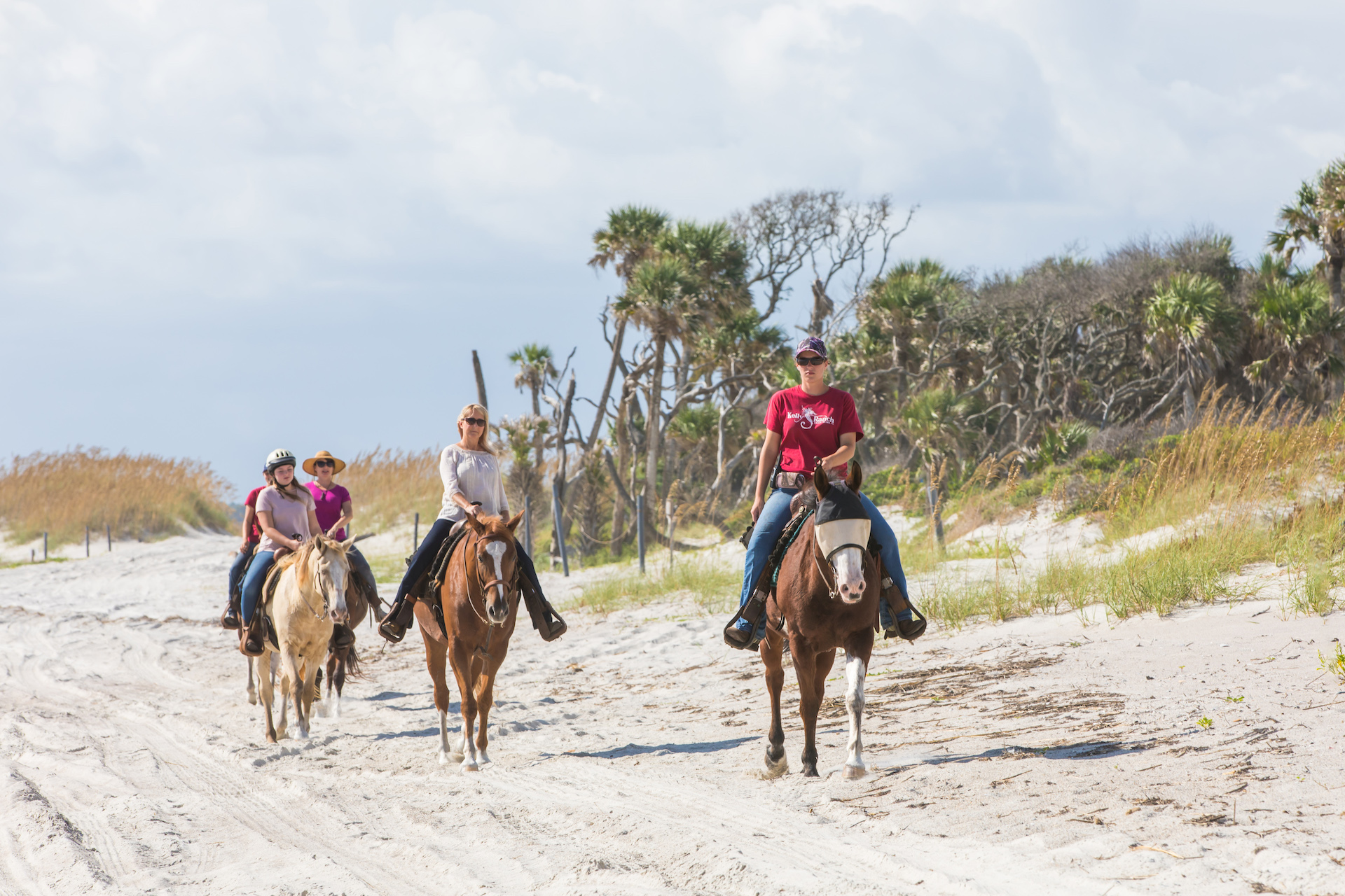 When you arrive for your adventure, the guides from Happy Trails Walking Horses will take you on a one-hour journey. Your adventure starts at our actual beach ranch where you will get to see the stalls and tack room. You will be assigned a horse, mount when the guide indicates to do so, then have a brief riding and safety lesson, which is part of the hour adventure. Our guide will take your group through a fun and amazing lush trail full of traditional Florida vegetation. The trail leads out to Amelia Island’s pristine beach shoreline. You will take this luxury ride on one of our impressive Tennessee Walking Horses (some of whom are direct descendants of Roy Roger’s famous Trigger).