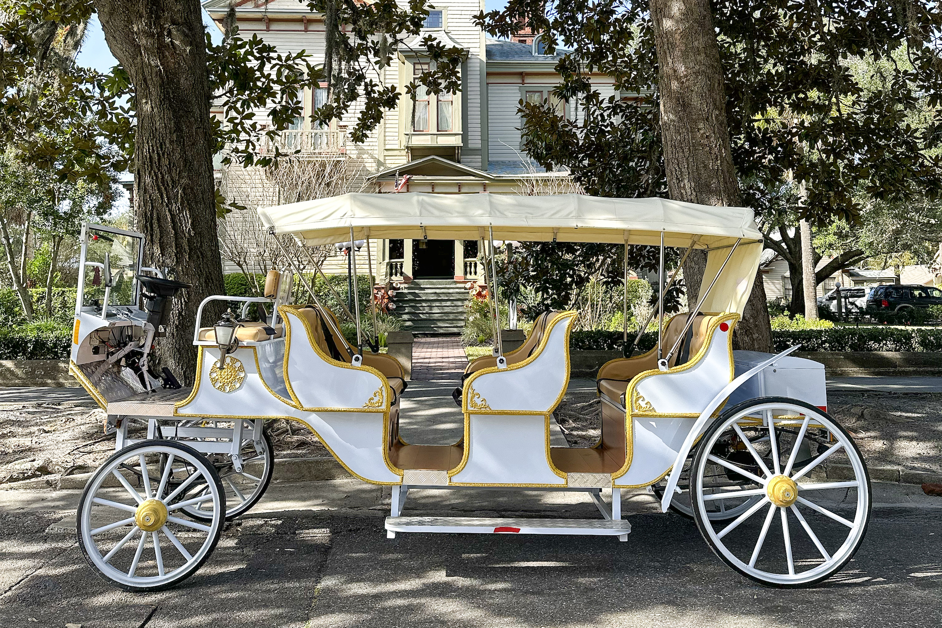 We cordially extend our offerings of enchanting and romantic wedding experiences, featuring E-carriage rides that traverse the captivating historic district of Fernandina. If you are seeking an idyllic venue for your wedding in our esteemed location, we invite you to reach out to us for a memorable and picturesque celebration.