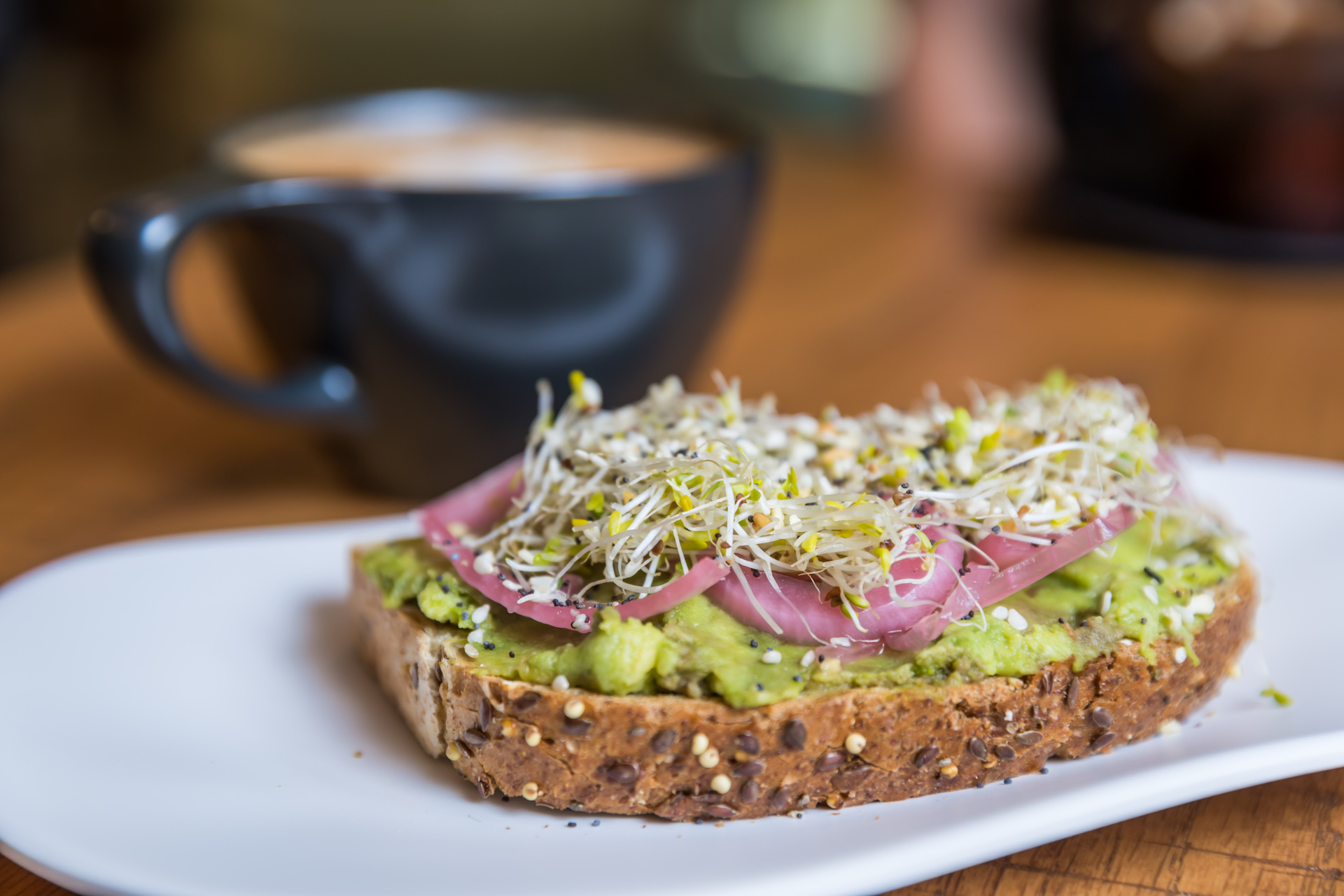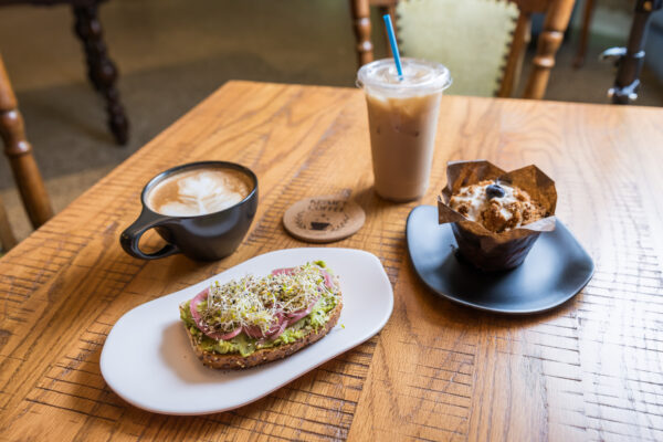 A cozy coffee experience, amongst local art offering coffee, tea, pastries, toast, and smoothies.