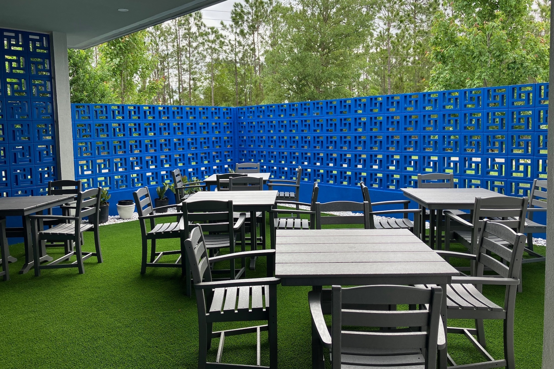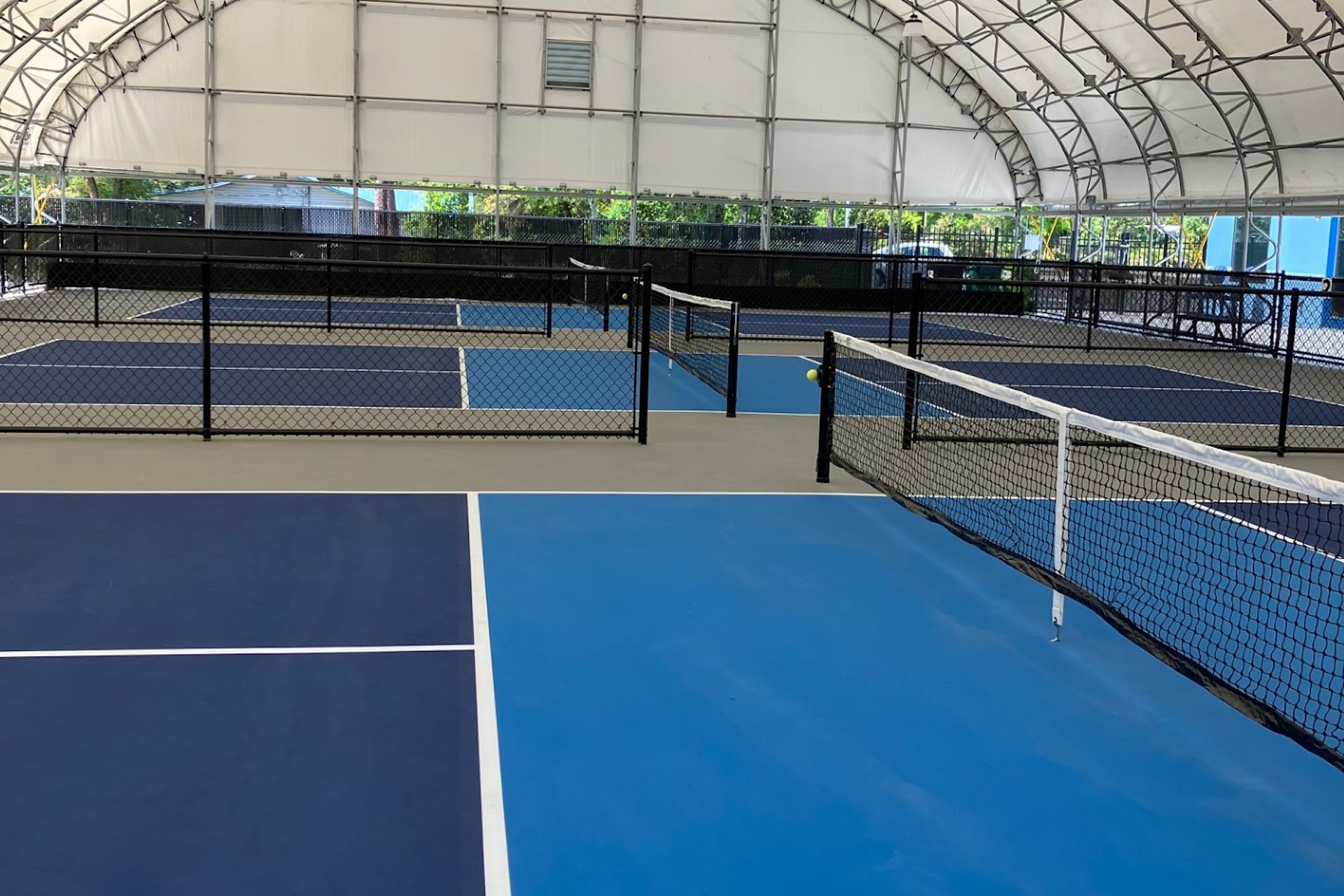 Come and enjoy eight covered, individually fenced pickleball courts. You can play every day here. We have loaner paddles and provide the balls for play. Patio seating for 20 and kitchenette can be used for parties.