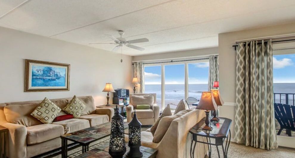 Your 2 bedroom, oceanfront condo comes fully furnished with all the luxuries of home. Rolling waves and gentle Atlantic Ocean breezes create a serene panorama from your private oceanfront deck. And the location couldn’t be better with restaurants and parks just a block away.