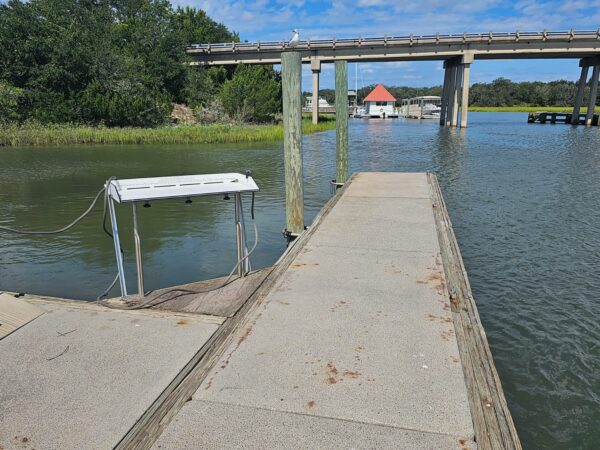 Conveniently located on Egans Creek, we are accessible from both land and water. We offer a variety of live, fresh and frozen baits which include live shrimp, mud minnows, fiddler crabs, fresh shrimp when available and all of your frozen cut and troll baits. Grab all of those last minute goods with only stopping once before putting in at our safe private boat in a wake-free zone. Is the bite on fire and run out of bait, or get a little thirsty on the water? No need to pull your boat out of the water to replenish, just pull up to our floating dock to get what you need.