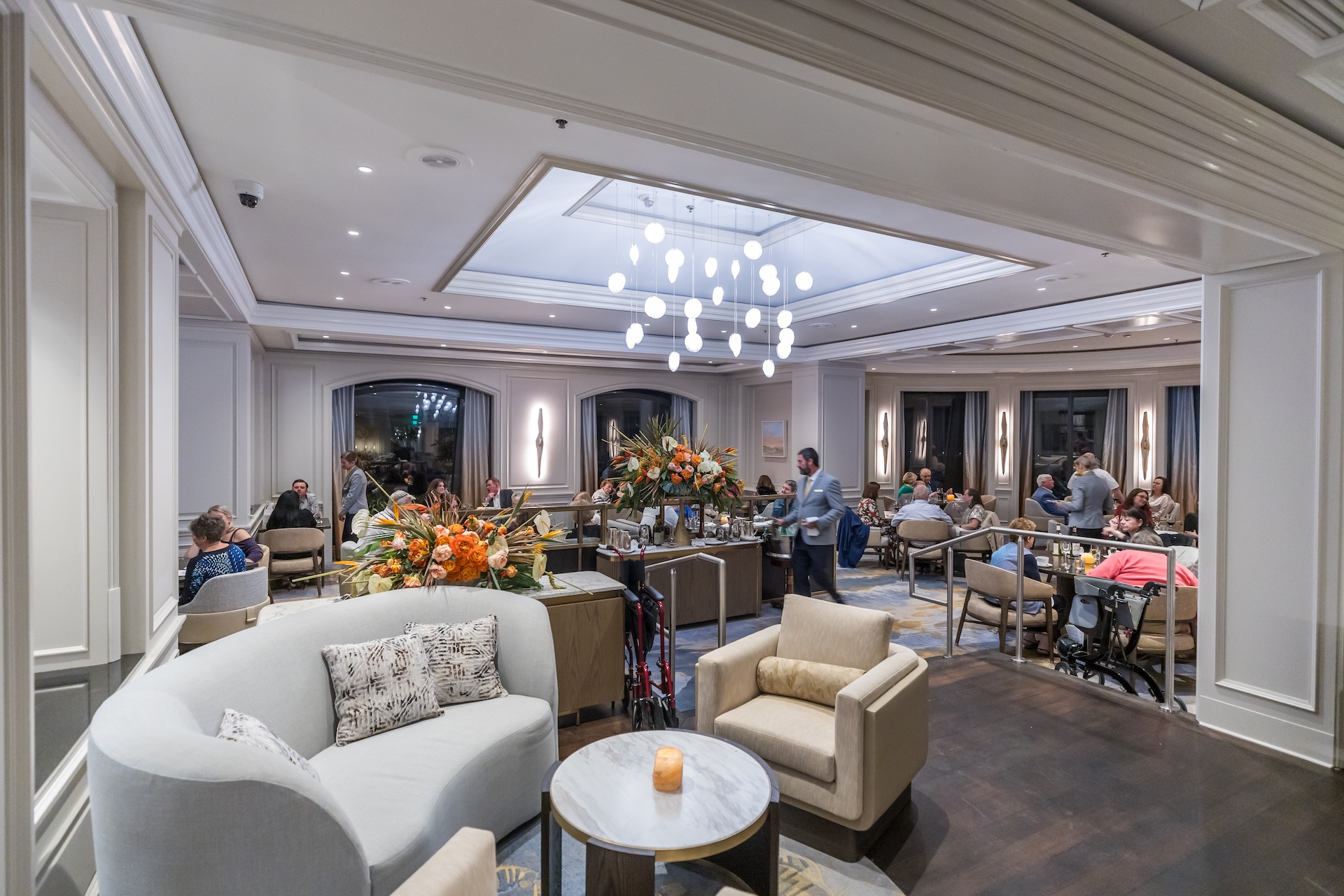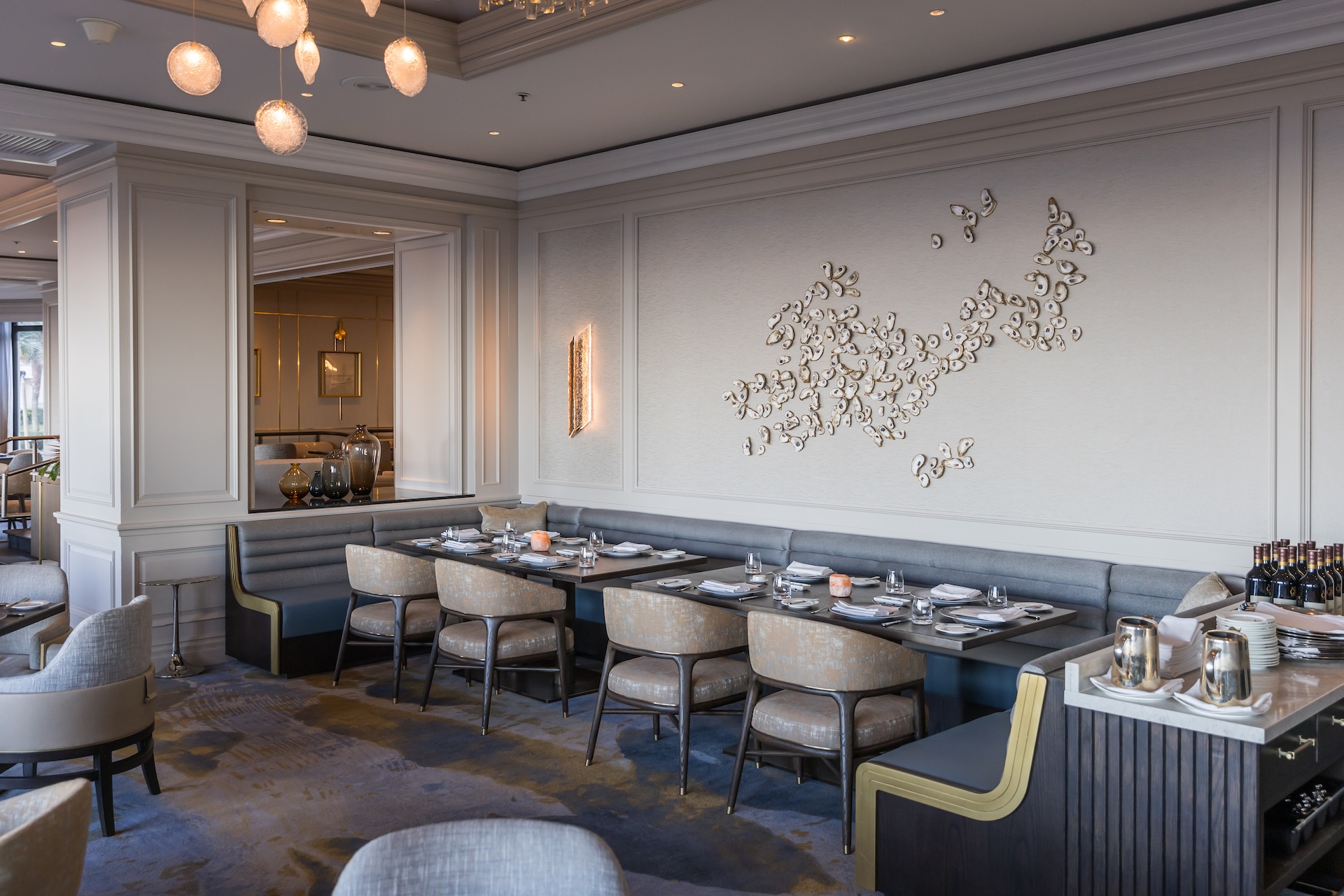 Private Dining - The Atlantic Room - The Atlantic Room offers breathtaking ocean views and access to a reception terrace featuring two fire towers and lounge seating. Accommodates up to 28 guests. The culinary experience is elevated by the exquisite delicacies crafted by Chef Okan Kizilbayir, ensuring a memorable dining experience that delights all the senses.