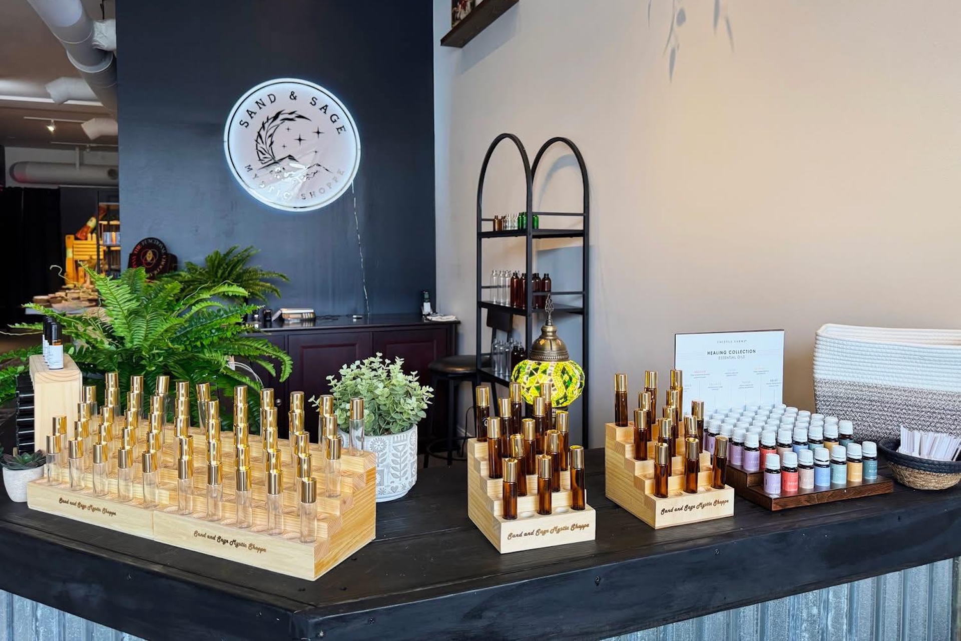 Organic bulk herbs and Artisan crafted tincture All-natural hygiene and skincare products A customizable fragrance bar for personalized scent creations Metaphysical essentials including crystals, incense, candles, and ritual tools Unique clothing, artisan gifts, and crystal & turquoise jewelry On site events; Tarot readings. Reiki healing. Sound bowl & meditation ceremony’s