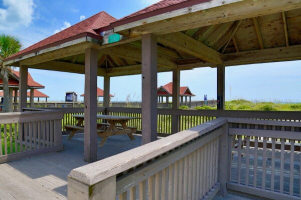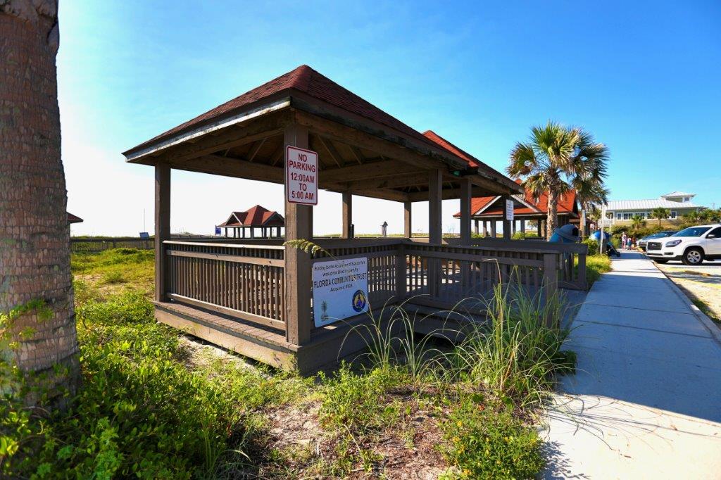 Seaside Park is centrally located on Amelia Island and has easy accessibility to the beach. There is limited parking available, several pavilions for picnicking, bathrooms with outdoor shower, boardwalks leading down to the beach, and lifeguard towers manned daily from Memorial Day weekend through Labor Day. Sliders Seaside Grill is located next door for a bite to eat.