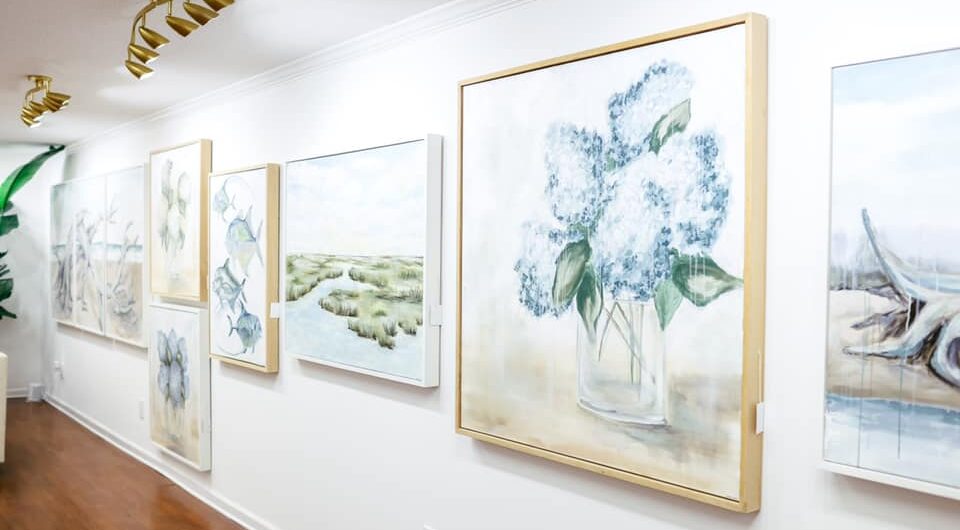 Fine art gallery and paint workspace showcasing the art of Emma Collins. Also offers private art lessons, group painting workshops, and private parties.
